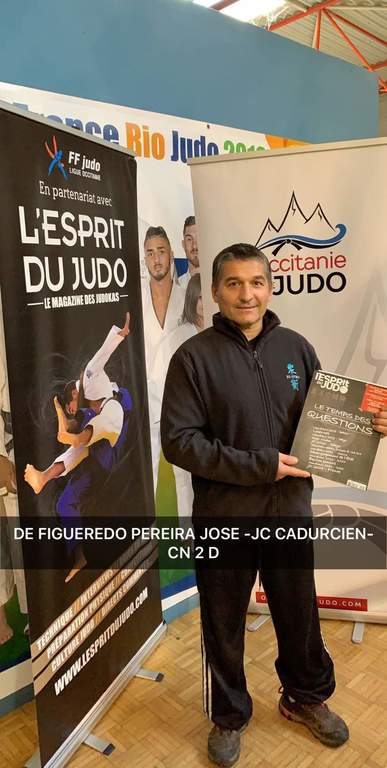 Frédéric Fénéant, lui, combattait pour le 3e dan ....il marque 20pts et atteint les 100pts nécéssaires, reste a passer les katas !