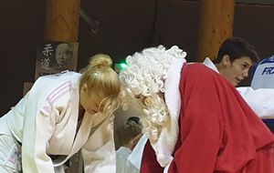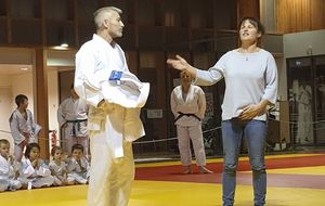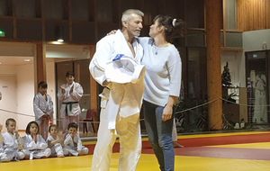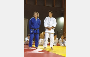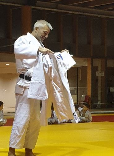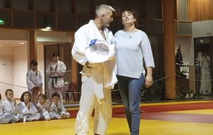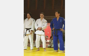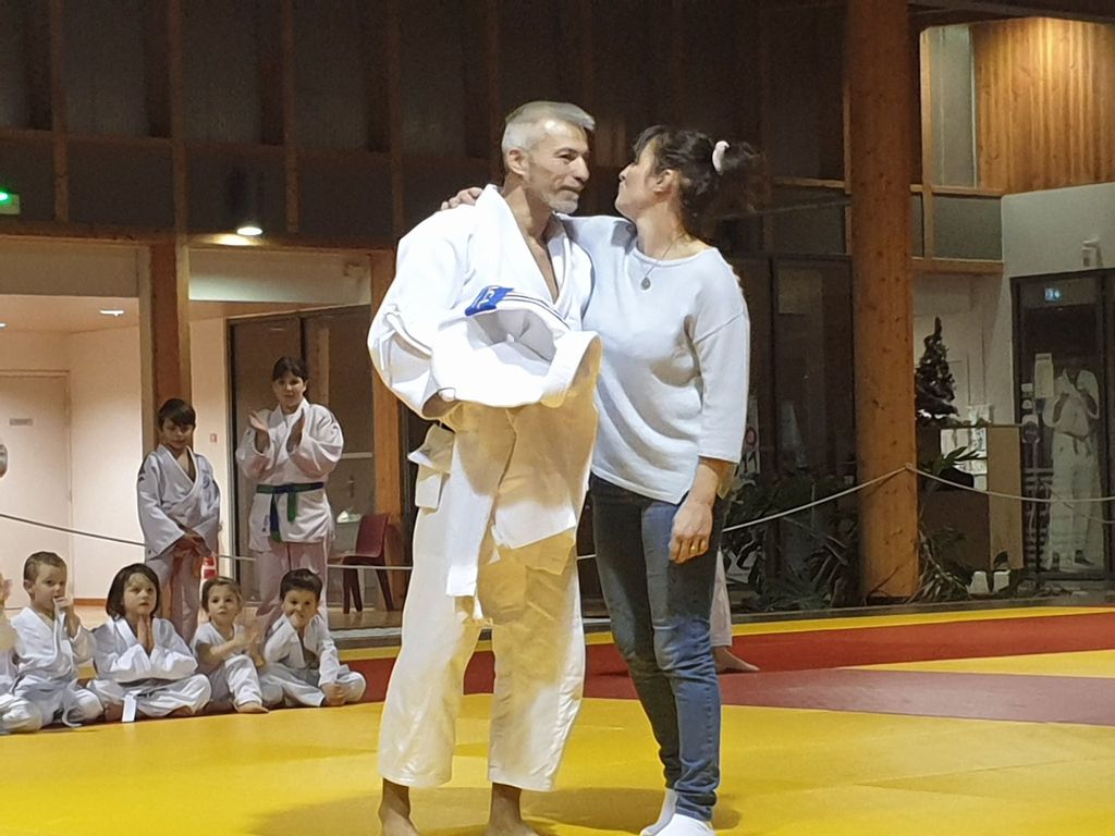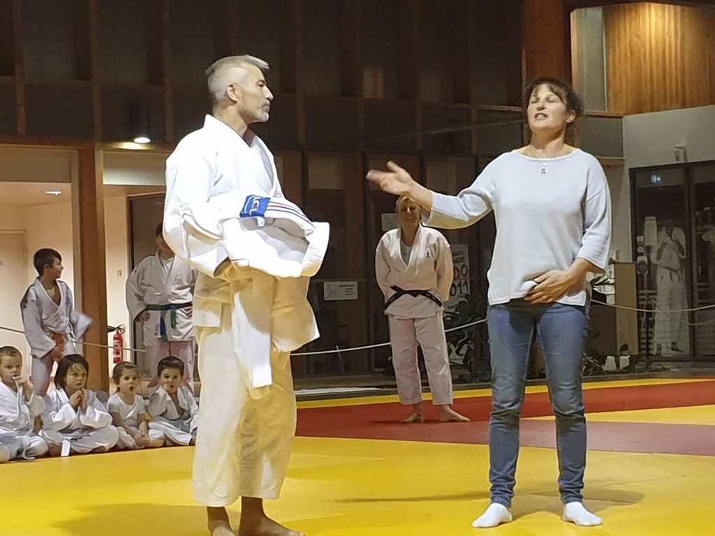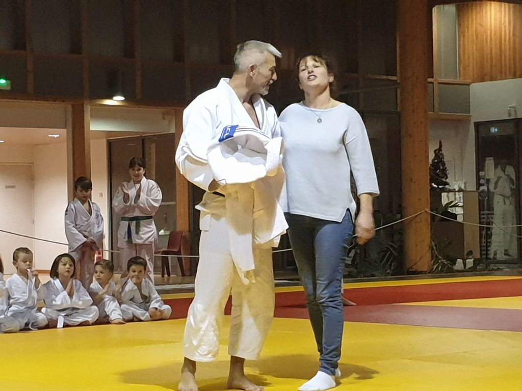la soirée s'est interompu quelques minutes, le temps pour Karine Dyot(entraineur national des cadets) de faire une surprise totalement inatendue à Lilian qui a été très touché par les mots et par le cadeau de Karine....le Kimono de l'équipe de France !!