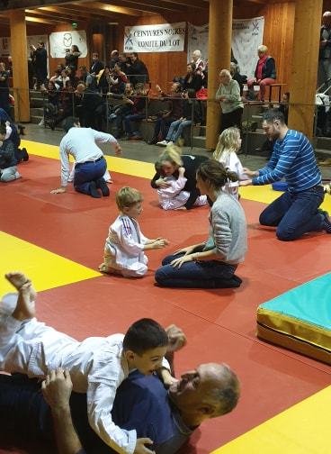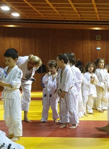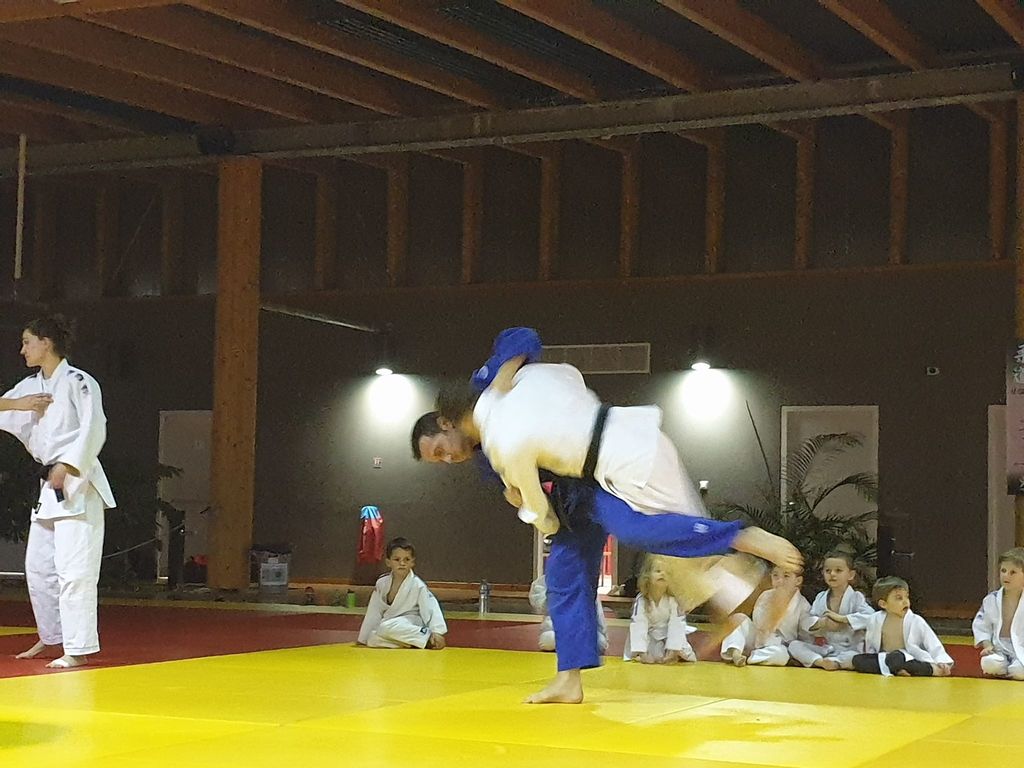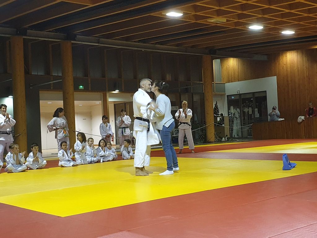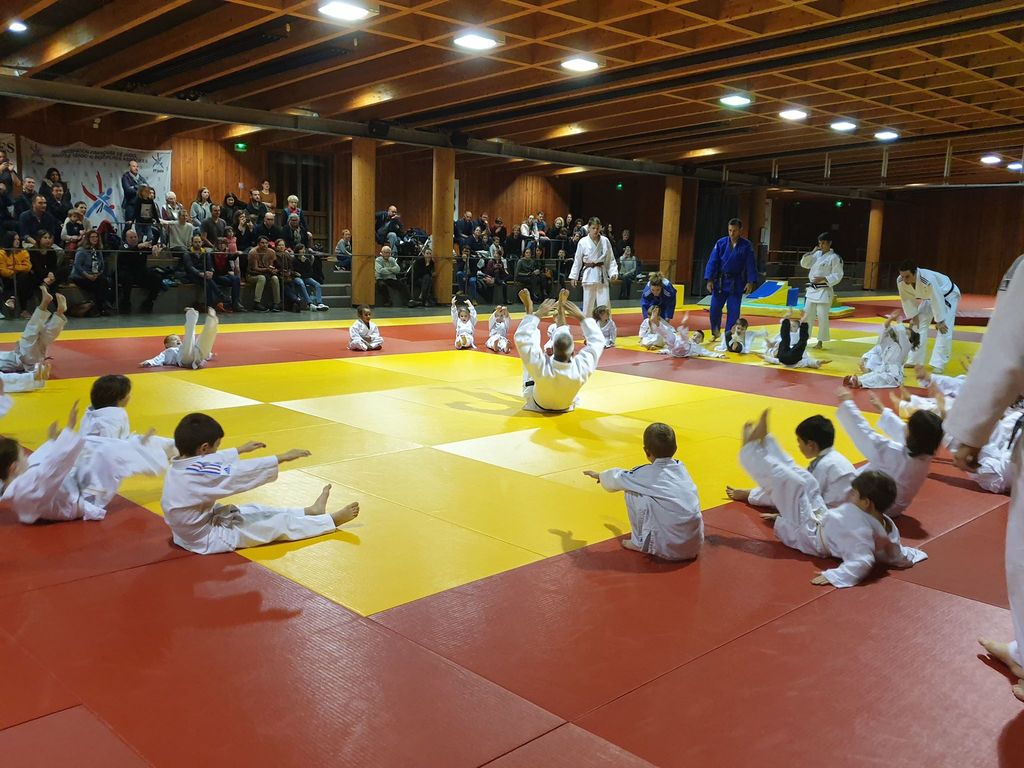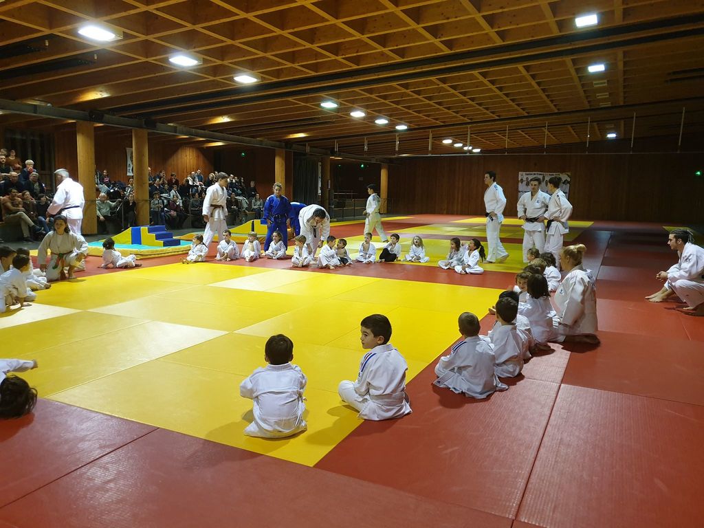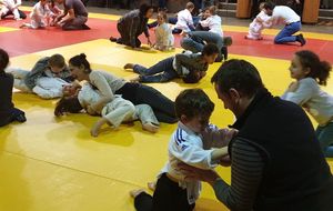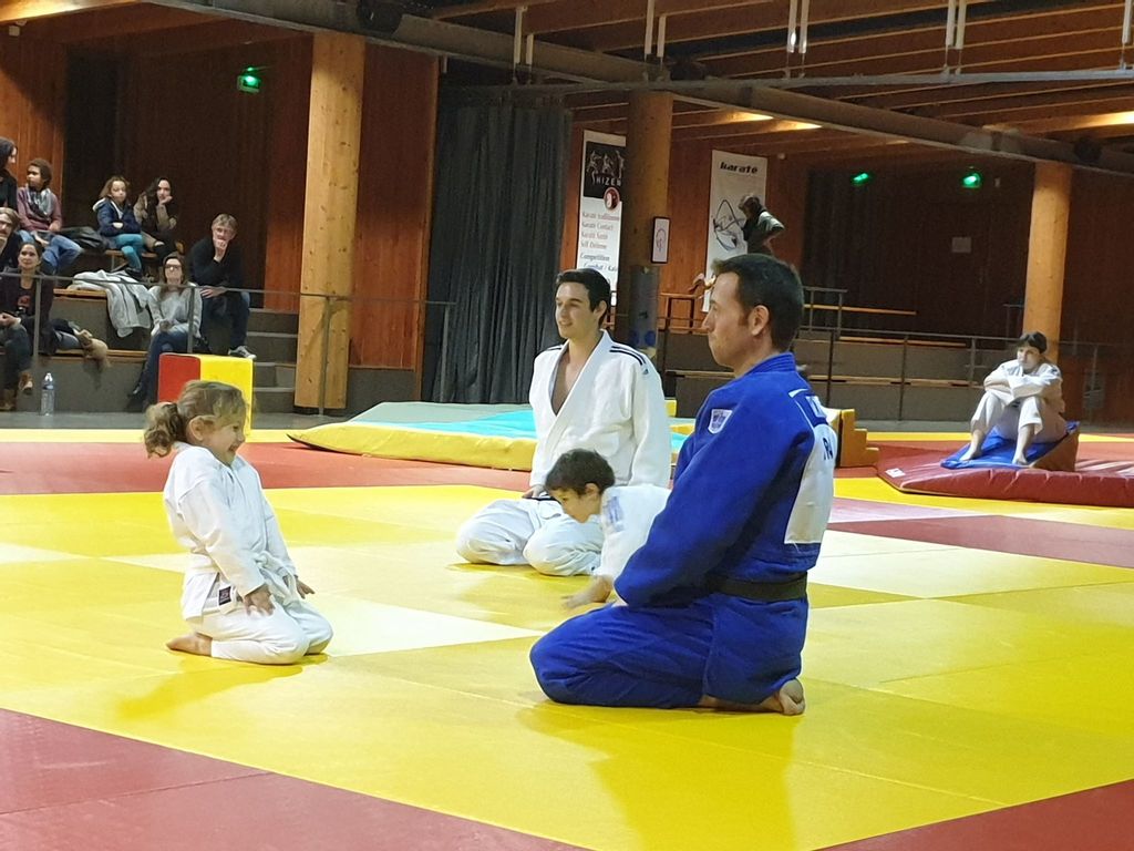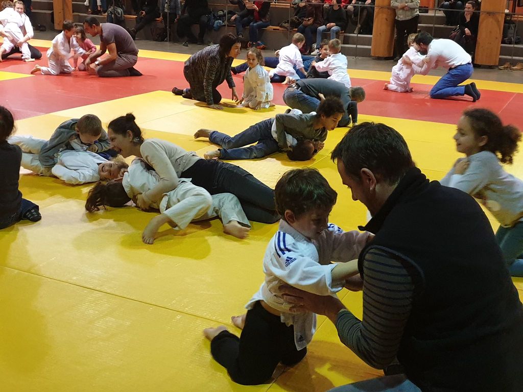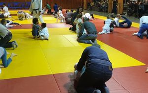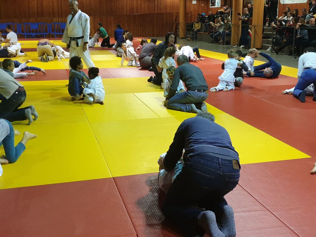 les baby judo ont débutés par une super démonstation devant tous les parents. Puis ils les ont invités sur le tatamis pour jouer avec eux....bien sur les petits ont gagné !!