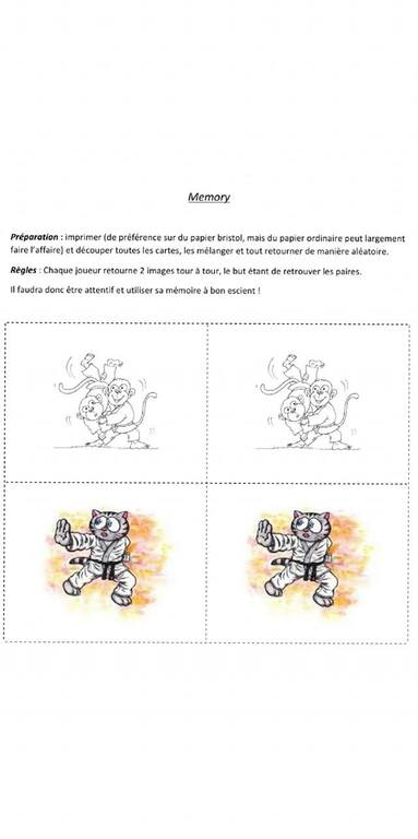 Voici un jeu Mémo judo pour jouer en faisant travailler la méméoire avec les enfants ...